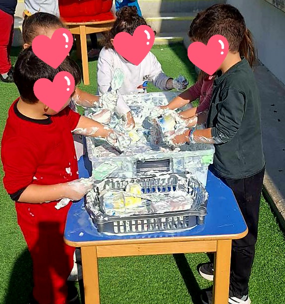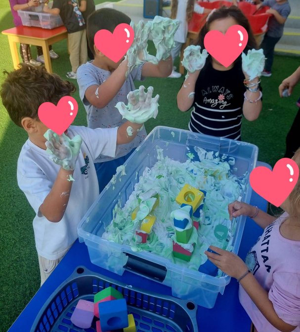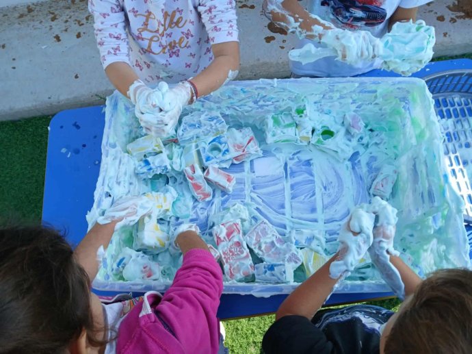 19/11/2025: Δεύτερο "Happy & Messy day". Τα παιδιά έφτιαξαν αριστουργήματα με πηλό, έκτισαν κάστρα με αφρό και οικοδομικό υλικό, έβαψαν παγάκια με νερομπογιές, ομαδοποίησαν μπάλες στο νερό και έπαιξαν με τη λάσπη.