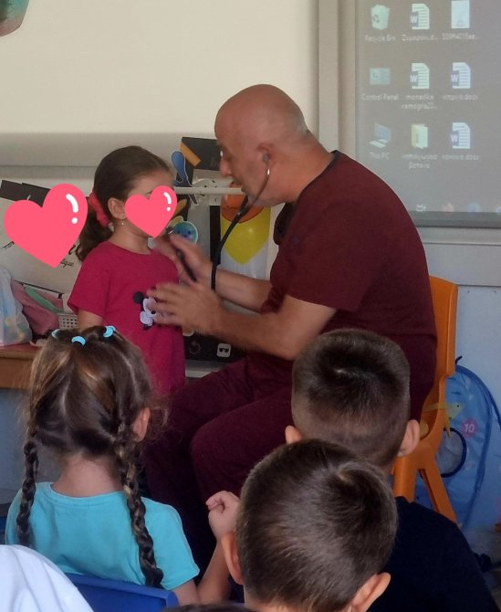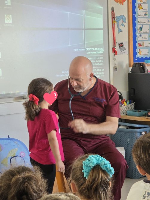 21/10/2025: Ο παιδίατρος Δρ. Αργυρίου επισκέφθηκε το νηπιαγωγείο μας στα πλαίσια της θεματικής ενότητας: "Φροντίζω το σώμα μου"΄. Μας έδωσε πολύτιμες συμβουλές για υγιεινές συνήθειες και πως να προστατεύουμε το σώμα μας από τις ιώσεις. Σας ευχαριστούμε!