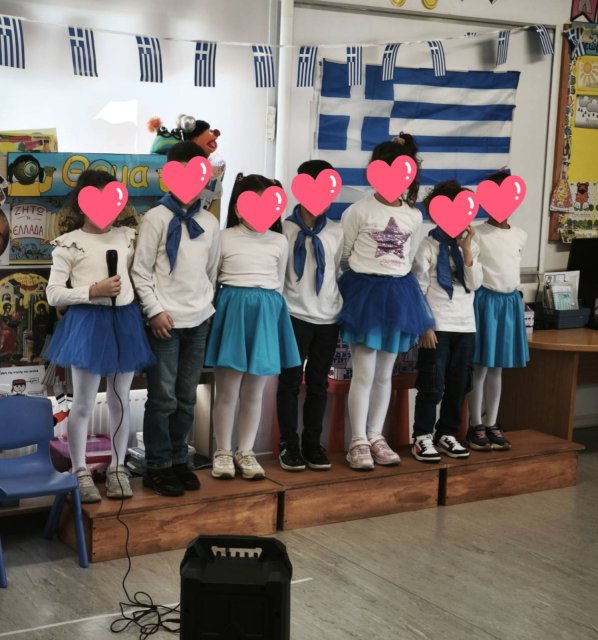 24/03/2025: Ενδοσχολικός εορτασμός 25ης Μαρτίου με ποιήματα, χορούς, τραγούδια και παρέλαση στη γειτονιά