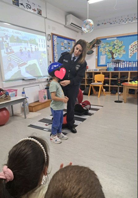 17/03/2025: Επίσκεψη αστυνομικού στο σχολείο μας. Μας έδωσε πολύτιμες συμβουλές για το πως να κυκλοφορούμε με ασφάλεια στο δρόμο