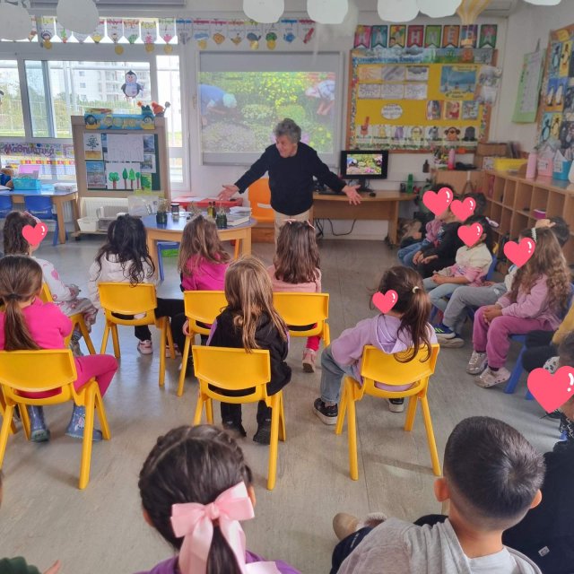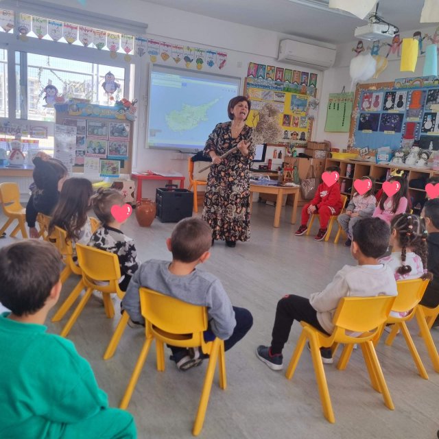 28/01/2025: Επίσκεψη της συγγραφέως κ.Κυριακής Τσαγκάρη-Χατζηγεωργίου στο νηπιαγωγείο μας και αφήγηση του κυπριακού λαϊκού παραμυθιού: "Η κοτζιακαρούα τζιαι το παστέλλιν" . Σας ευχαριστούμε!